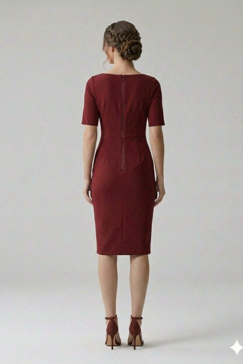Un vestido de silueta elegante y femenina que combina estructura y sofisticación.