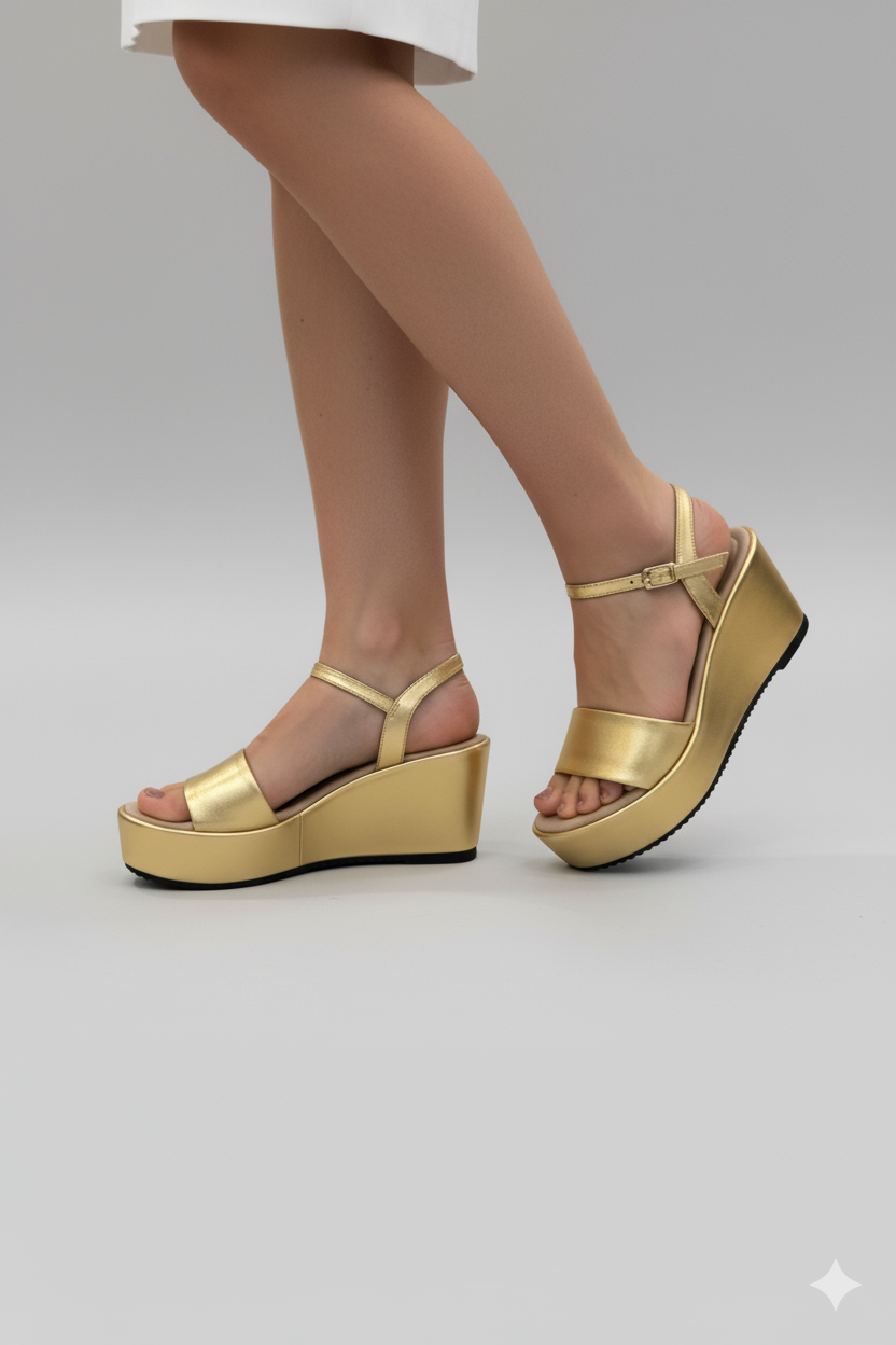 Sandalias África en Cuero Dorado con Plataforma