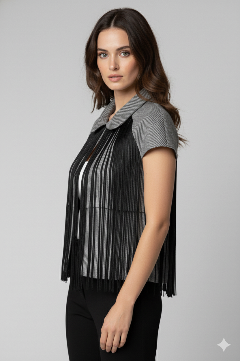 - Flecos de cintas satinadas que cubren el frente y la espalda